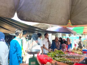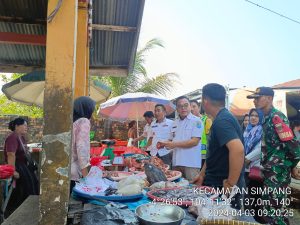 Giat Rabu, 03 April 2024 Pemantauan Harga Bahan Pokok di Pasar Tradisional Simpang oleh Tim Monitoring yang terdiri atas Camat Simpang, Kapolsek, Danramil, Sekcam, Kasi Trantib, Kasi Kessos, Kasubbag Kepegawaian, Kasubbag Keuangan dan Staf serta perwakilan dari UPTD Pasar danDesa Karang Agung.
